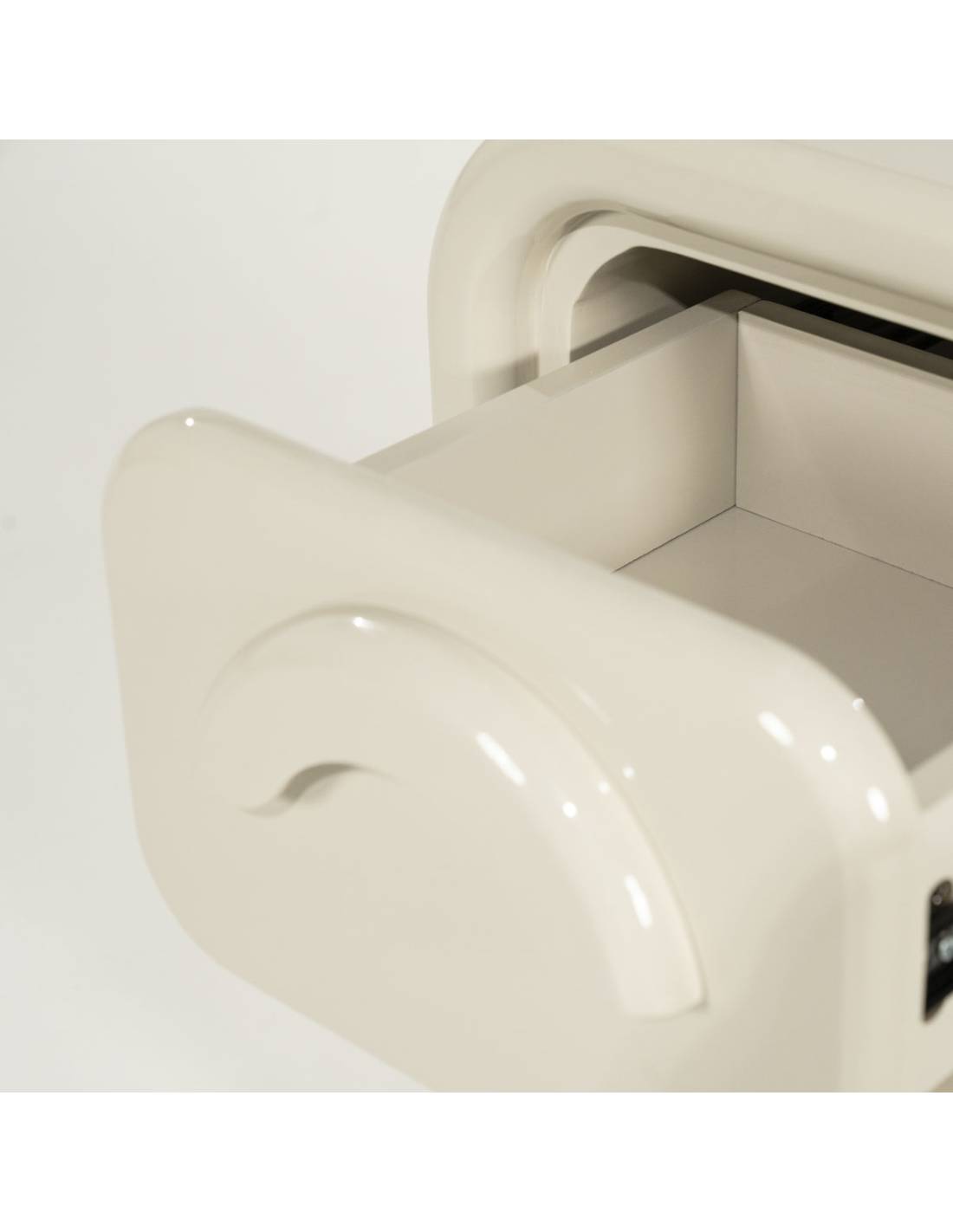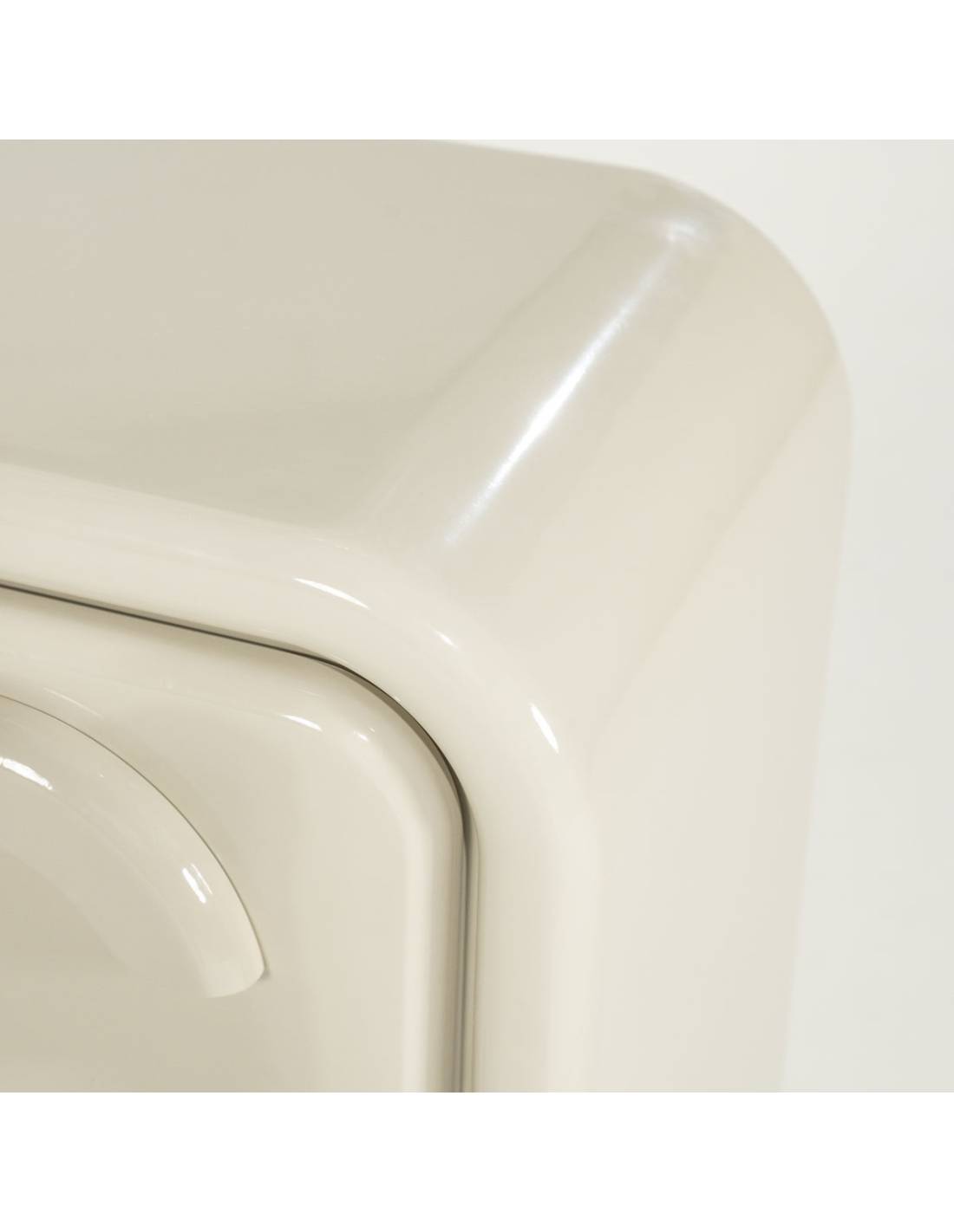 Avec ses lignes arrondies et son aspect laqué brillant, il offre un éclat miroir subtil qui reflète la lumière et agrandit visuellement l'espace.