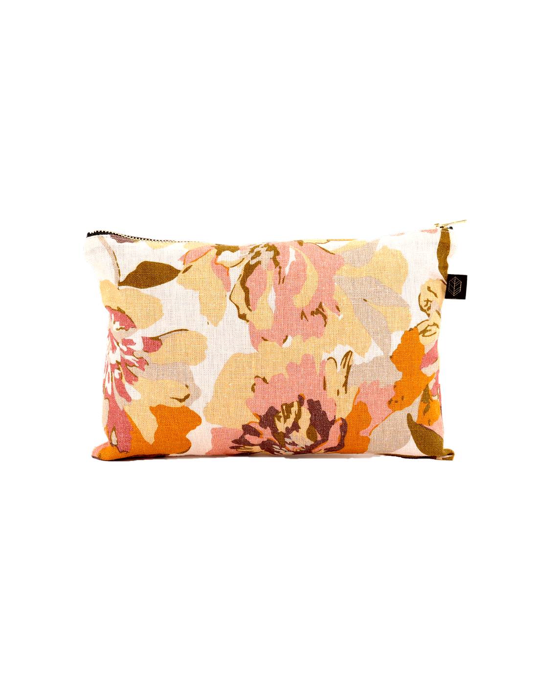Trousse en lin imprimé floral