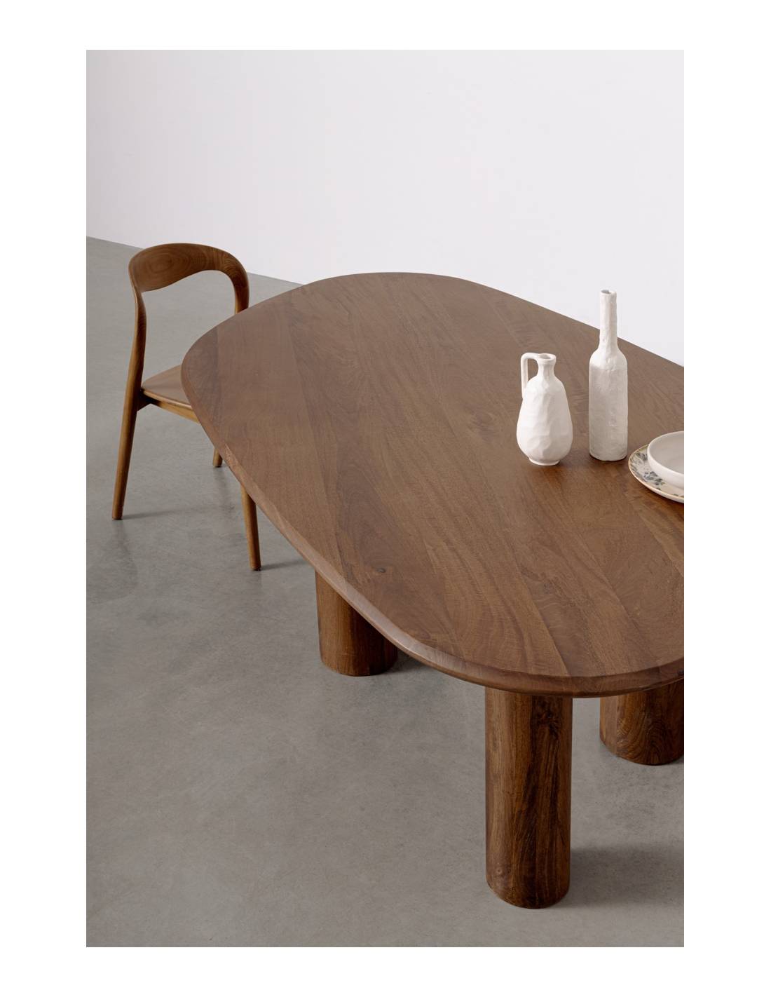 Son plateau ovale, aux lignes douces et légèrement irrégulières, casse les codes de la table rectangulaire classique.